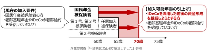 iDeCoの加入可能年齢について、70歳まで引き上げることとなりました。(現行:最長65歳まで)